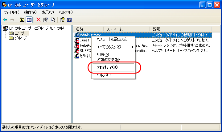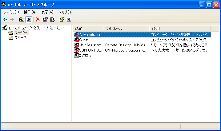 ・Win+R → ファイル名を指定して実行にて lusrmgr.msc を入力してENTER