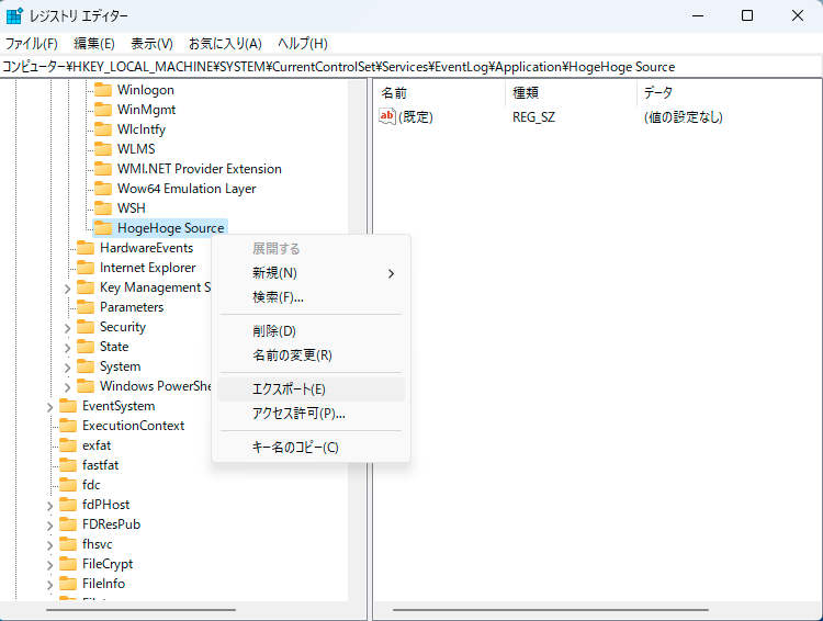 例: EventLog.WriteEntry("HogeHoge Source", Message ); なら「HogeHoge Source」