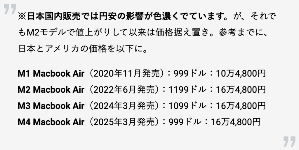 引用:https://www.gizmodo.jp/2025/03/apple-macbook-air-m4-review-feeling-ever-so-blue.html